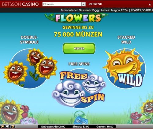 Wer ab Freitag, den 29.04.2011 00:01 Uhr bis Sonntag den 01.Mai 2011 23:59 Uhr mindestens 50 Runden Flowers spielt nimmt an der Ziehung teil.
