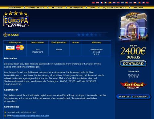 Als Besitzer einer MasterCard verfügen Sie über eine akzeptiertes Zahlungsmittel, um das Guthaben in den verschiedenen Casinos aufzuladen. Nach Eingabe der Kreditkartennummer und der zugehörigen Kartenprüfnummer im Banking-Menu des Online Casinos können Sie sofort loslegen: Ihre Einlage wird innerhalb von wenigen Sekunden gutgeschrieben. Da die Transaktion verschlüsselt stattfindet, brauchen Sie sich um die Sicherheit beim Casino Online spielen keine Gedanken machen. Über den Auszug Ihrer MasterCard behalten Sie zudem den Überblick über Ihre Einsätze. Allerdings gibt es auch Einschränkungen: Die meisten US-amerikanischen Banken und Kreditinstitute lehnen Transaktionen an Online Casinos ab, da US-Bürgern das Casino spielen online nicht gestattet ist. Für europäische Spieler gelten diese Beschränkungen nicht. Daher sollte es in der Regel keine Probleme geben, mit der MasterCard als Zahlungsmethode online im Casino zu spielen.